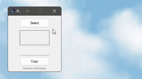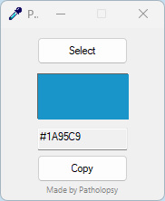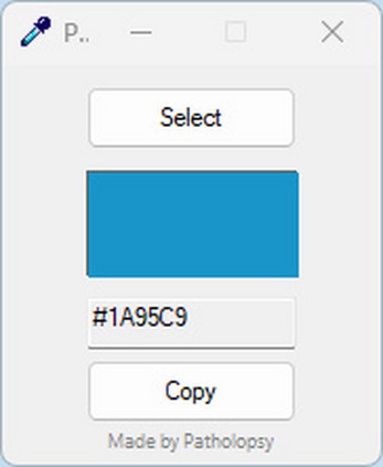 PikaColor (pick a color) is a simple eyedropper that lets you grab the color of any pixel on your screen and get its hex code. No installation required.